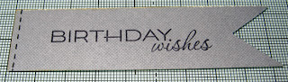 For my sentiment I cut a banner shape from the grey card and stamped my sentiment on it. I also added some faux stitching with a black pen.